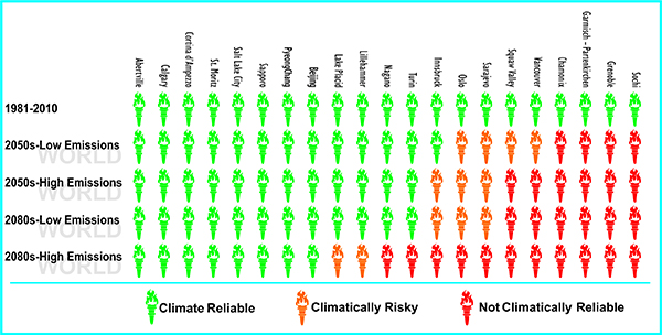 “Climate change alters the geography of the Winter Olympic Games,” said Robert Steiger of the University of Innsbruck in Austria. “The International Olympic Committee will have increasingly difficult decisions about where to award the Games, and for some regions interested in hosting a future Winter Olympics, the time to bid for the games might need to be sooner than later.”